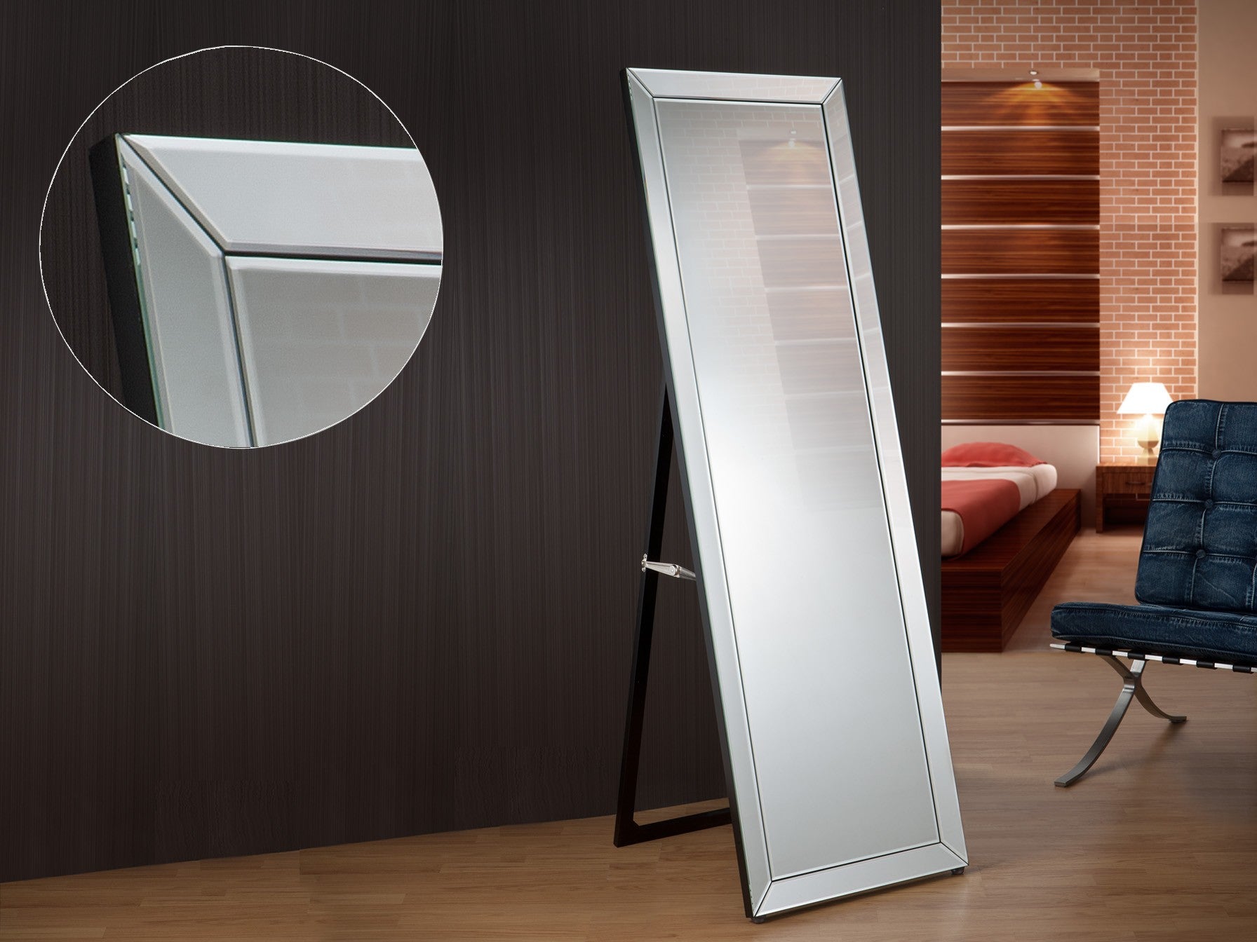 Miroir boudoir fait avec des glaces biseautées. Fond en Agglo finition en couleur noire. Peut être suspendu a mur ou sur pied, grâce au pied rabattable.