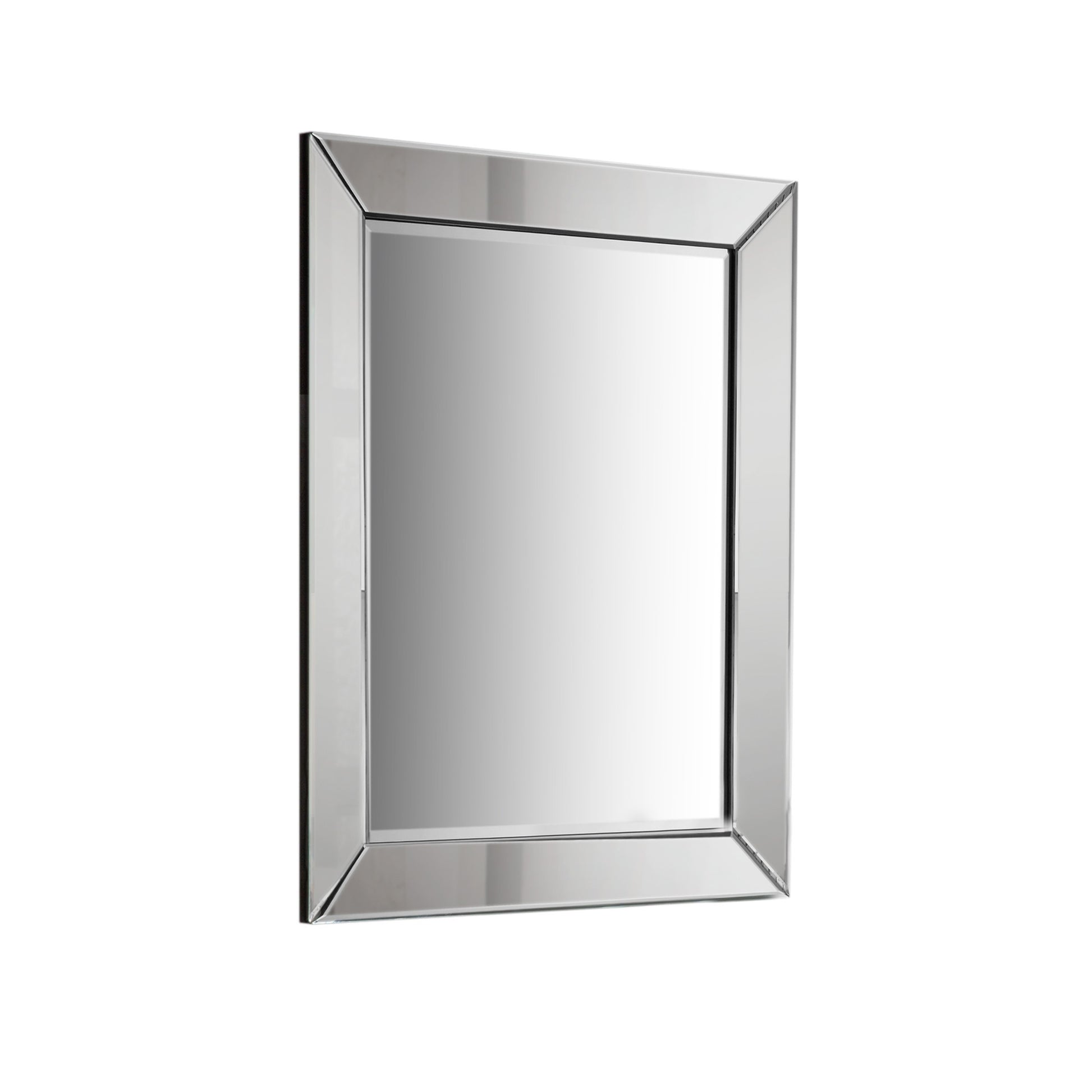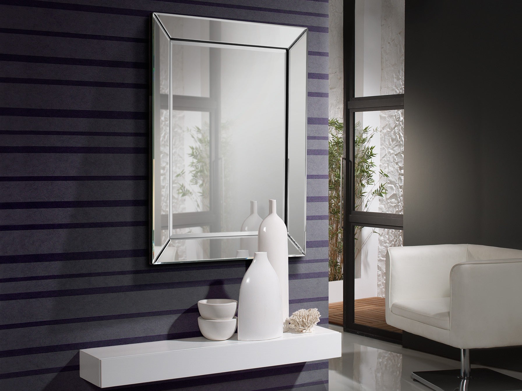 Miroir rectangulaire fait avec des glaces biseautées. Dos en MDF finition couleur noire. Préparé pour suspendre en position horizontale ou verticale.